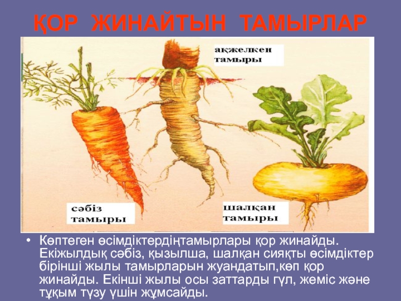 Слайд 4ҚОР ЖИНАЙТЫН ТАМЫРЛАР