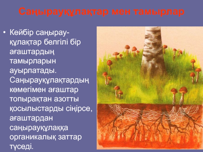 Слайд 8Саңырауқұлақтар мен тамырлар
