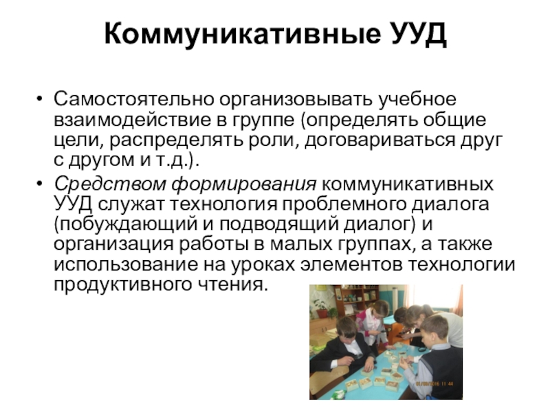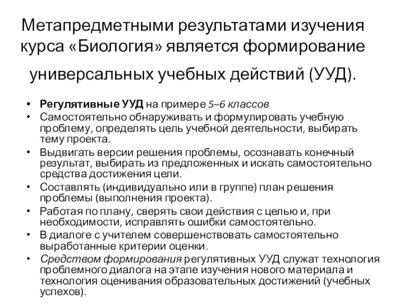 Средством формирования регулятивных УУД служат технология проблемного диалога на этапе изучения нового материала и технология оценивания образовательных достижений (учебных успехов).