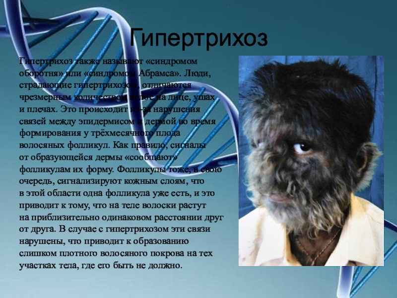 Гипертрихоз также называют «синдромом оборотня» или «синдромом Абрамса». Люди, страдающие гипертрихозом,