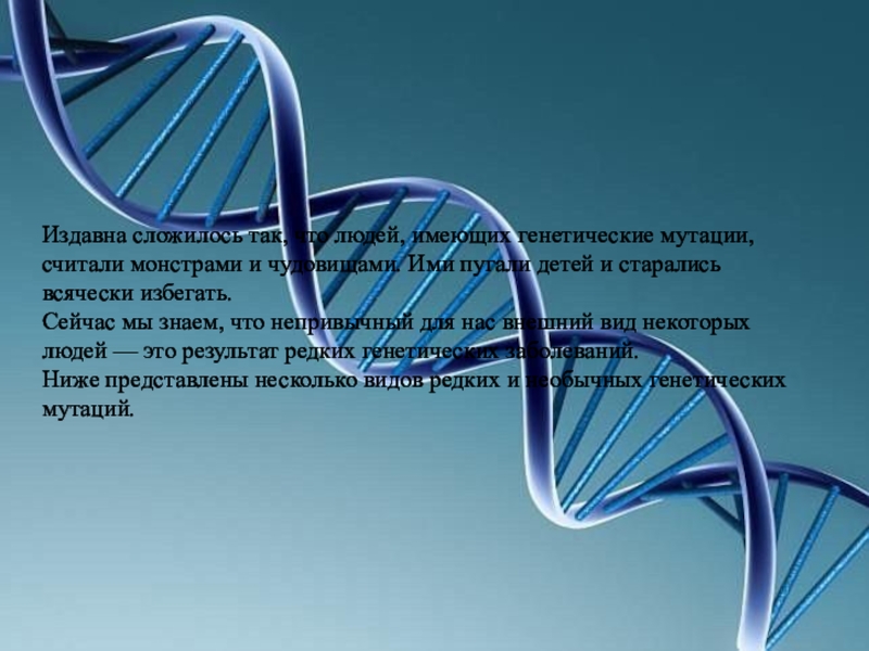 Слайд 3Издавна сложилось так, что людей, имеющих генетические мутации, считали монстрами и