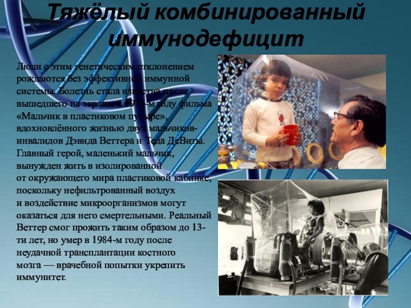 Люди с этим генетическим отклонением рождаются без эффективной иммунной системы.