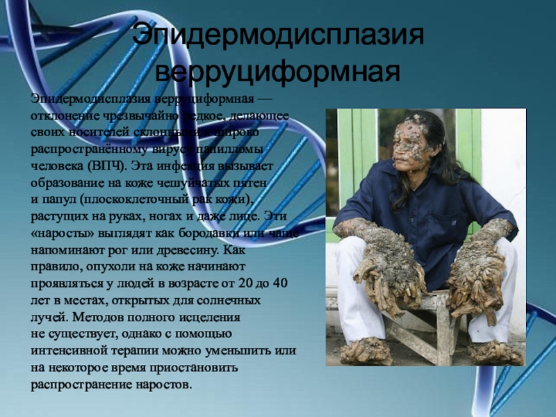 Эпидермодисплазия верруциформная — отклонение чрезвычайно редкое, делающее своих носителей склонными к широко