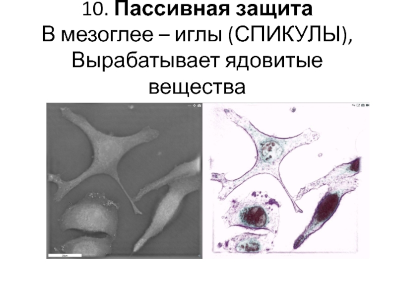 Слайд 1110. Пассивная защита В мезоглее – иглы (СПИКУЛЫ), Вырабатывает ядовитые вещества