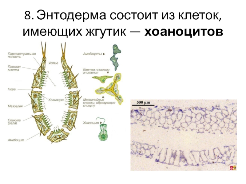 8.	Энтодерма состоит из клеток, имеющих жгутик — хоаноцитов