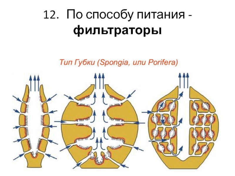 Слайд 1211. Питание, дыхание и выделение губок осуществляется благодаря току воды через их тело