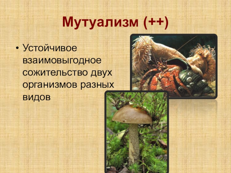 Слайд 10Мутуализм (++)