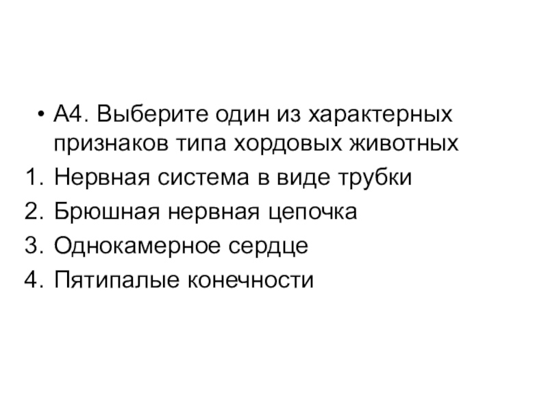 Слайд 5А4. Выберите один из характерных признаков типа хордовых животных