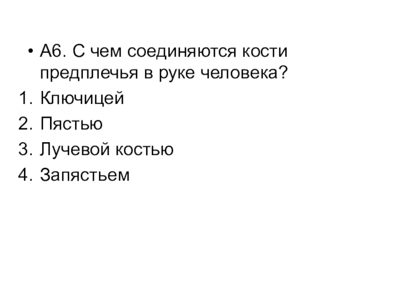Слайд 7А6. С чем соединяются кости предплечья в руке человека?