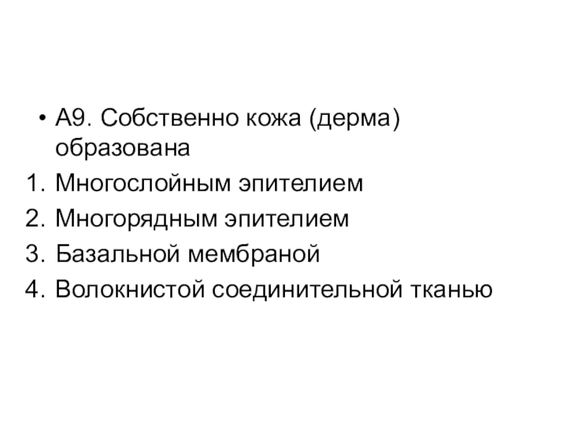 Слайд 10А9. Собственно кожа (дерма) образована