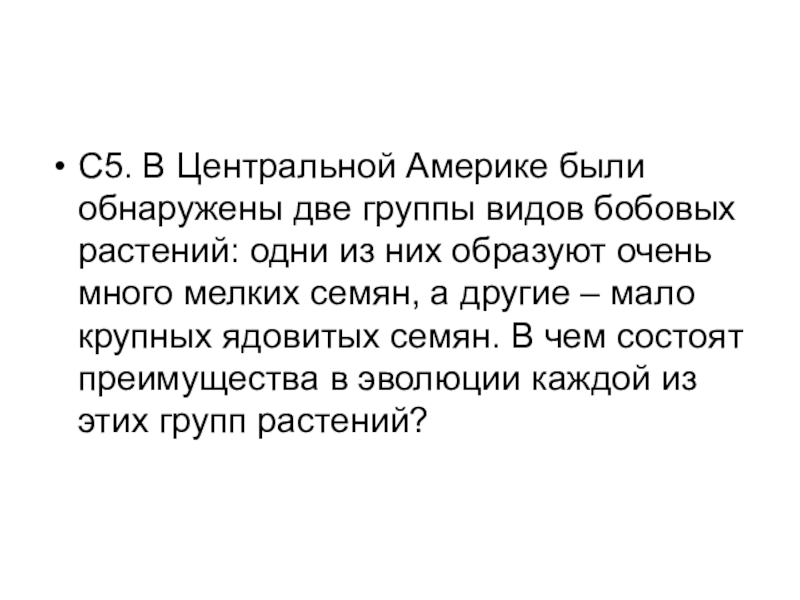 Слайд 33С5. В Центральной Америке были обнаружены две группы видов бобовых растений: