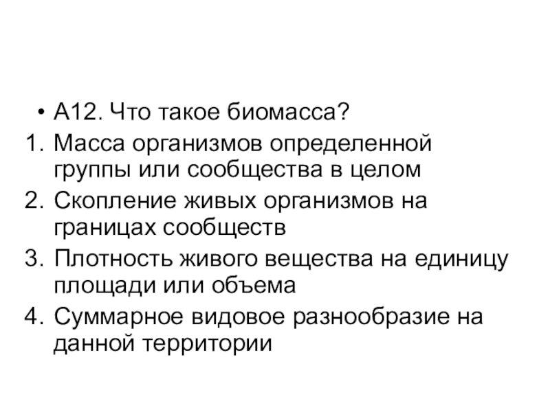 Слайд 13А12. Что такое биомасса?