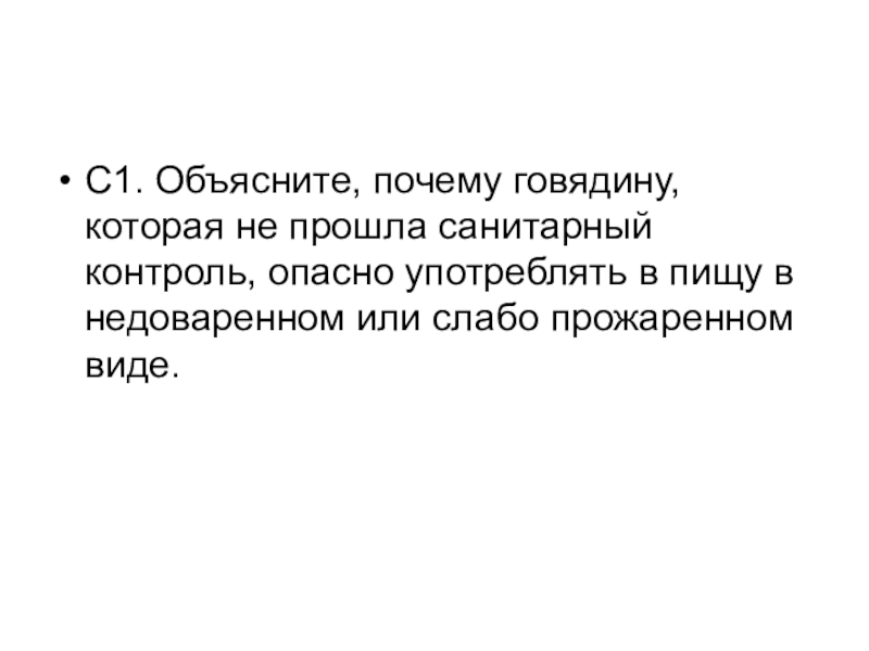 Слайд 43С1. Объясните, почему говядину, которая не прошла санитарный контроль, опасно употреблять