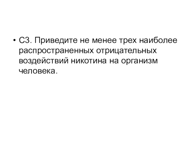 Слайд 41С3. Приведите не менее трех наиболее распространенных отрицательных воздействий никотина на