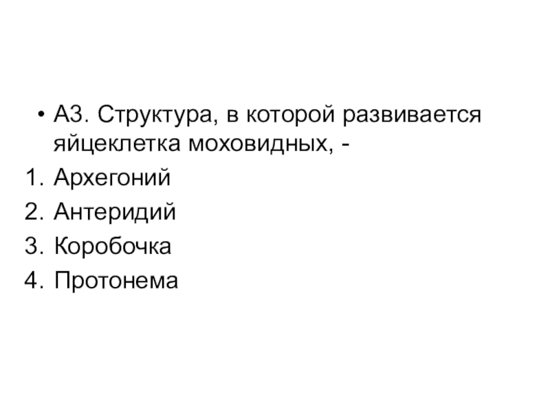 Слайд 4А3. Структура, в которой развивается яйцеклетка моховидных, -