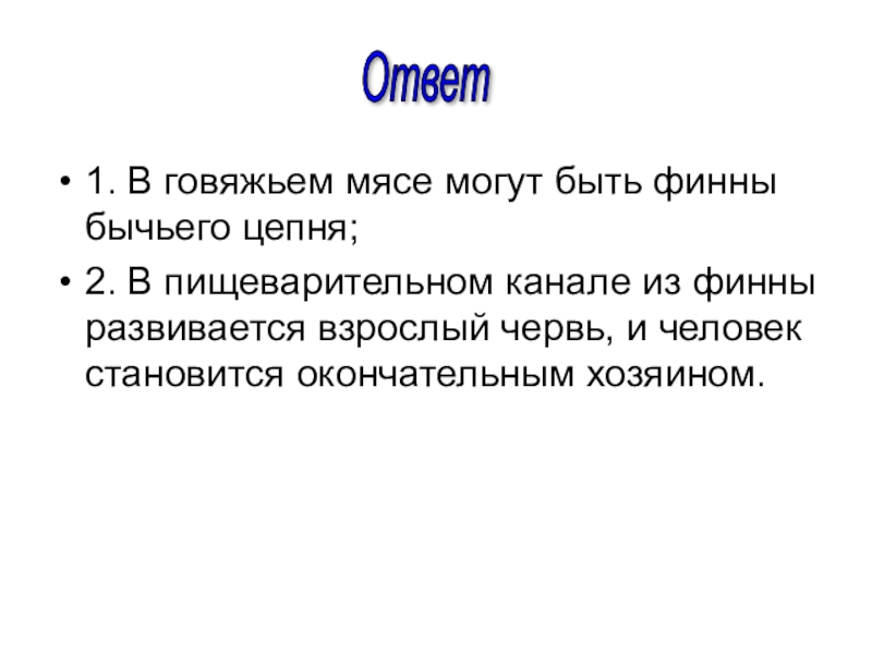Слайд 441. В говяжьем мясе могут быть финны бычьего цепня;