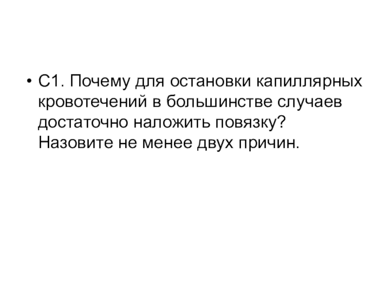 Слайд 39С1. Почему для остановки капиллярных кровотечений в большинстве случаев достаточно наложить