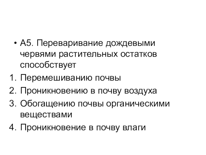 Слайд 6А5. Переваривание дождевыми червями растительных остатков способствует
