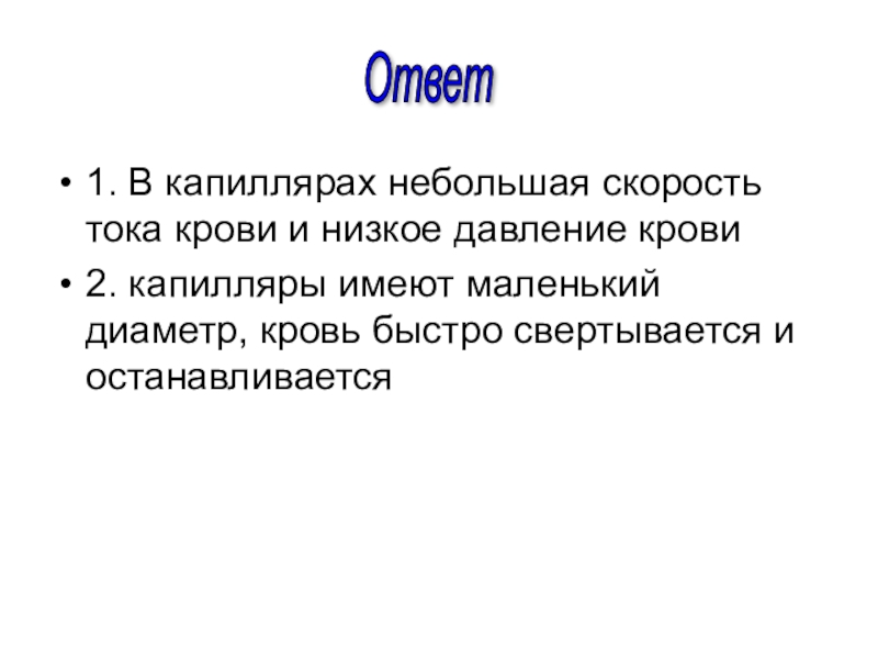 капилляры имеют маленький диаметр, кровь быстро свертывается и останавливается