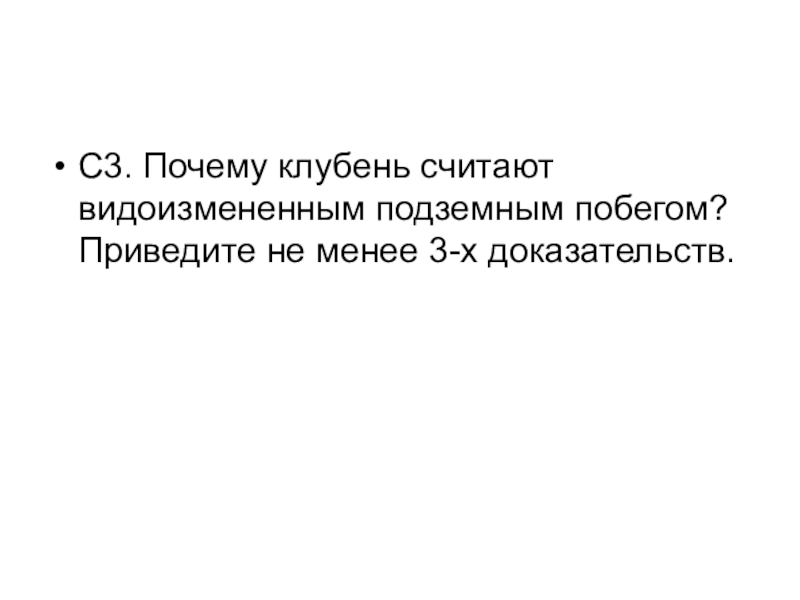 Слайд 35С3. Почему клубень считают видоизмененным подземным побегом? Приведите не менее 3-х