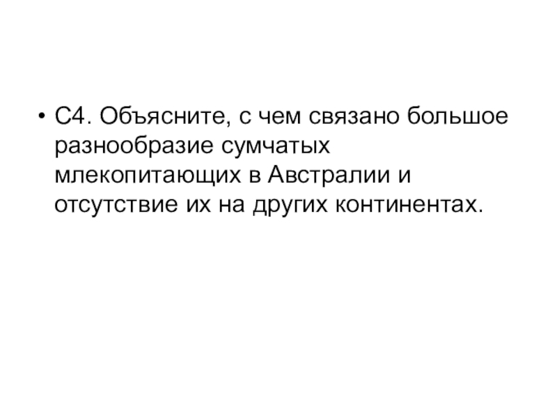 Слайд 37С4. Объясните, с чем связано большое разнообразие сумчатых млекопитающих в Австралии