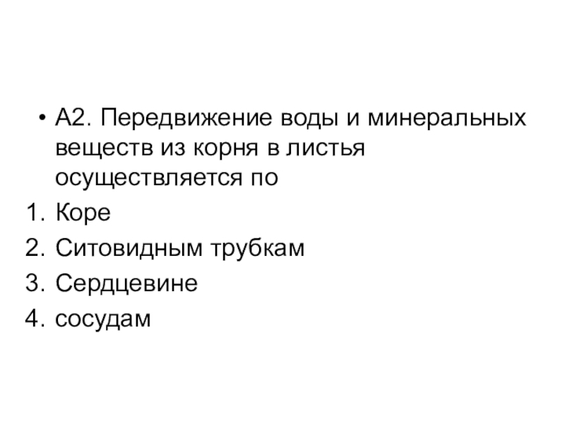 Слайд 3А2. Передвижение воды и минеральных веществ из корня в листья осуществляется