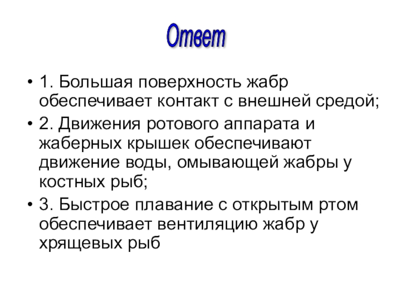 Слайд 301. Большая поверхность жабр обеспечивает контакт с внешней средой;