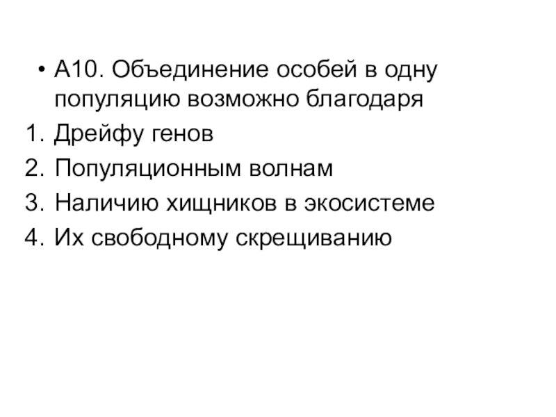 Слайд 11А10. Объединение особей в одну популяцию возможно благодаря