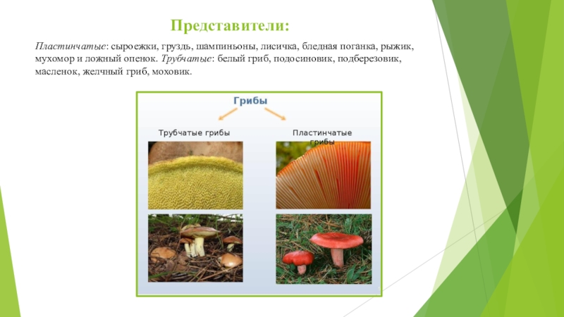 опенок. Трубчатые: белый гриб, подосиновик, подберезовик, масленок, желчный гриб, моховик.