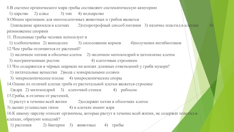 Слайд 128.В системе органического мира грибы составляют систематическую категорию
