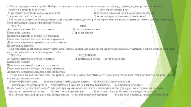 Слайд 1526.Чем сходны растения и грибы? Выберите три верных ответа из шести