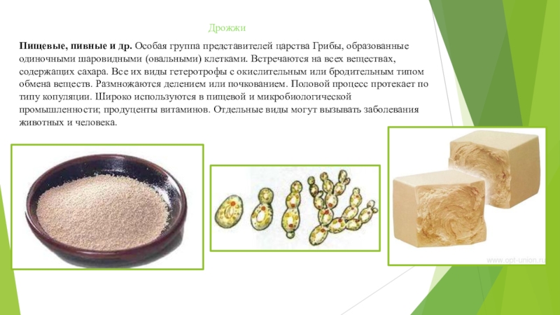 Пищевые, пивные и др. Особая группа представителей царства Грибы, образованные одиночными