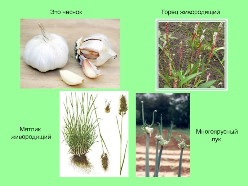 Это чеснокГорец живородящий   Мятлик живородящийМногоярусный     лук