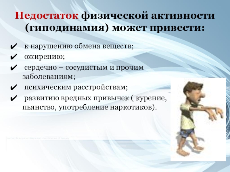 Слайд 15Недостаток физической активности (гиподинамия) может привести: