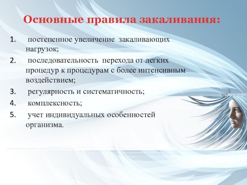 Слайд 6 постепенное увеличение закаливающих нагрузок;