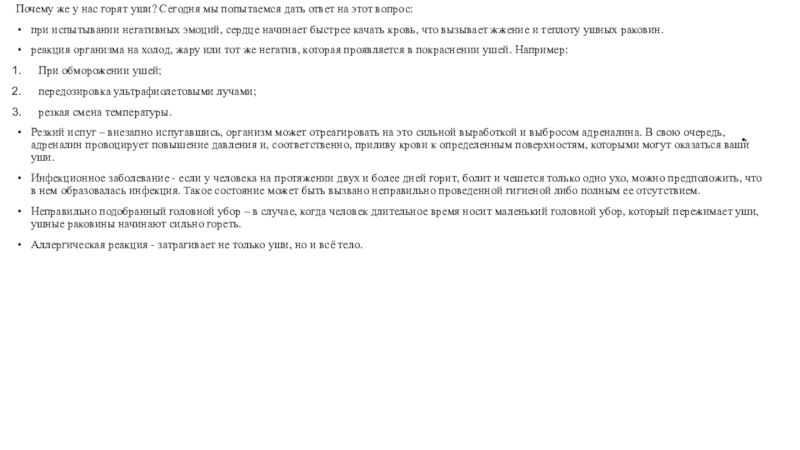 Резкий испуг – внезапно испугавшись, организм может отреагировать на это сильной выработкой и выбросом адреналина. В свою очередь, адреналин провоцирует повышение давления и, соответственно, приливу крови к определенным поверхностям, которыми могут оказаться ваши уши.