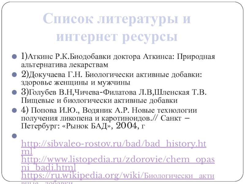 Рассмотреть виды Биологически активных добавок и узнать основные мифы о них.