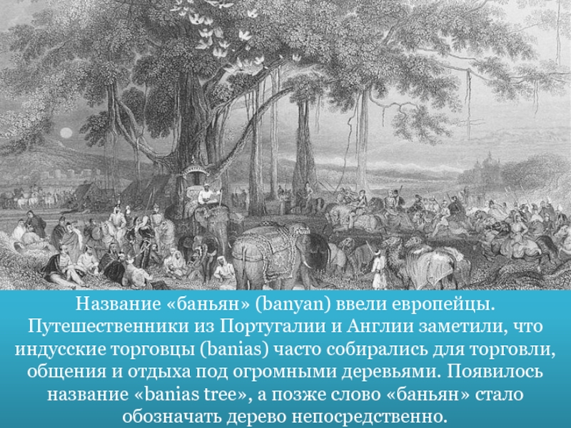 Слайд 21Название «баньян» (banyan) ввели европейцы. Путешественники из Португалии и Англии заметили,