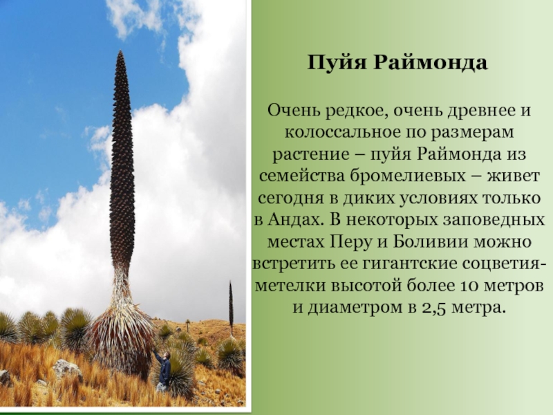 Слайд 8Очень редкое, очень древнее и колоссальное по размерам растение – пуйя