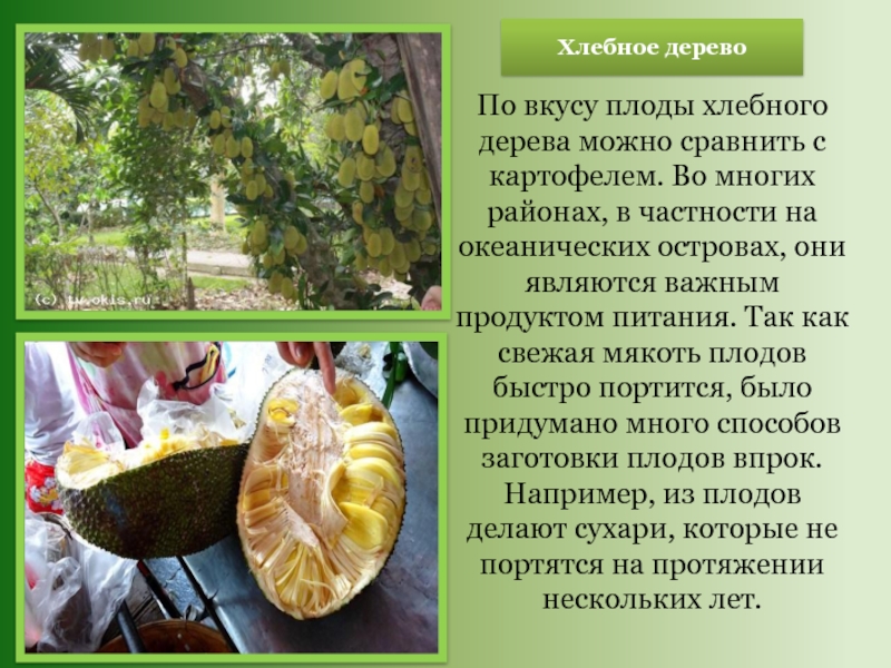 Слайд 25По вкусу плоды хлебного дерева можно сравнить с картофелем. Во многих