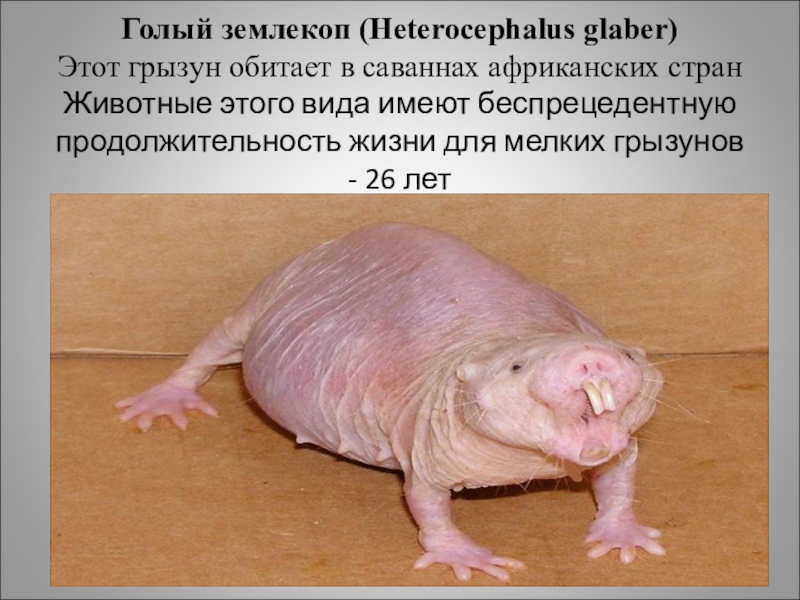 Слайд 6Голый землекоп (Heterocephalus glaber)