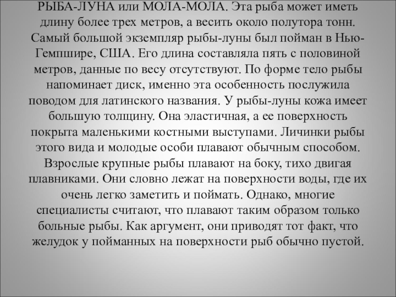 Слайд 32РЫБА-ЛУНА или МОЛА-МОЛА. Эта рыба может иметь длину более трех метров,