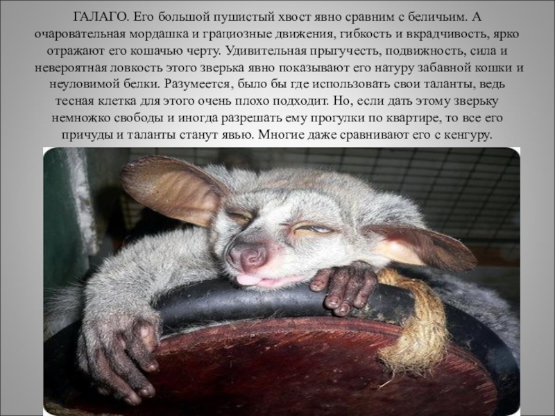Слайд 30ГАЛАГО. Его большой пушистый хвост явно сравним с беличьим. А очаровательная