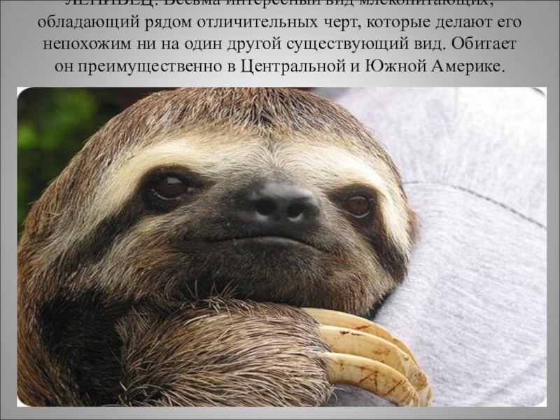 Слайд 53ЛЕНИВЕЦ. Весьма интересный вид млекопитающих, обладающий рядом отличительных черт, которые делают