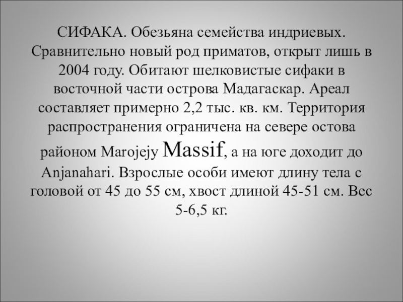 Слайд 51СИФАКА. Обезьяна семейства индриевых. Сравнительно новый род приматов, открыт лишь в