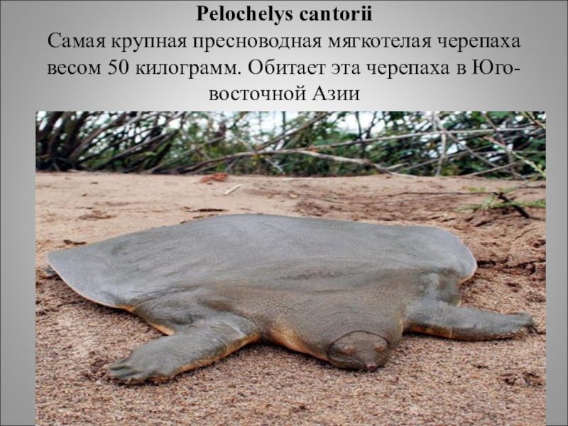 Самая крупная пресноводная мягкотелая черепаха весом 50 килограмм. Обитает эта