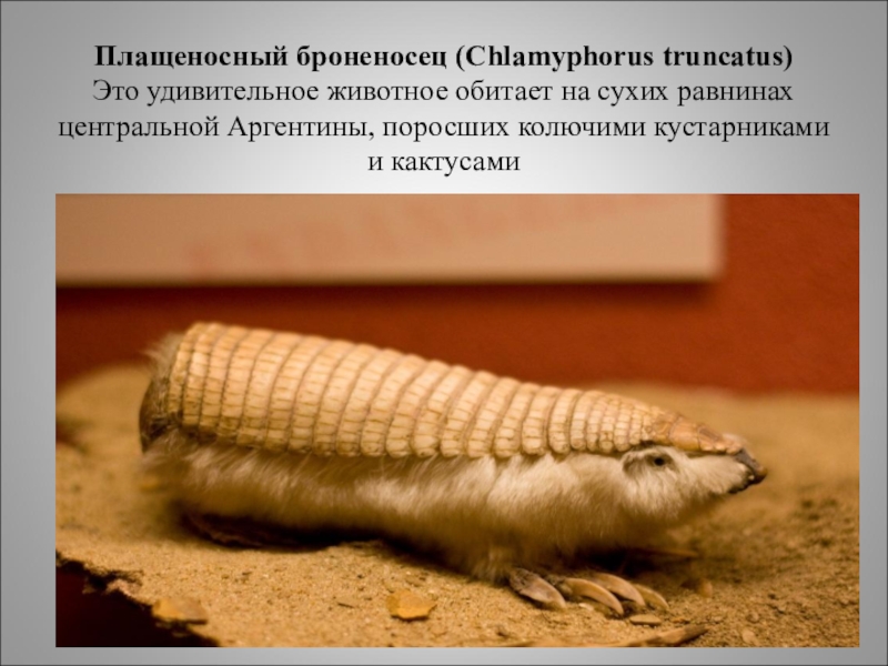 Слайд 3Плащеносный броненосец (Chlamyphorus truncatus)