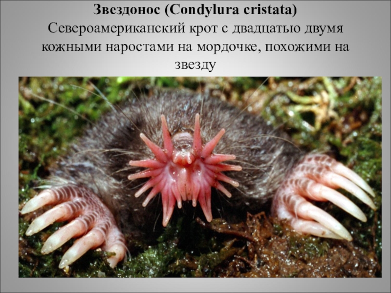 Североамериканский крот с двадцатью двумя кожными наростами на мордочке,