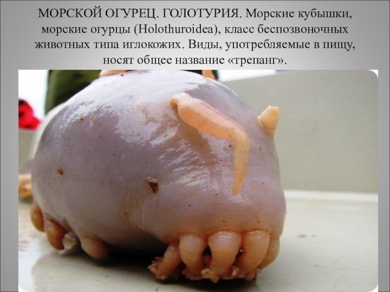 Слайд 21МОРСКОЙ ОГУРЕЦ. ГОЛОТУРИЯ. Морские кубышки, морские огурцы (Holothuroidea), класс беспозвоночных животных