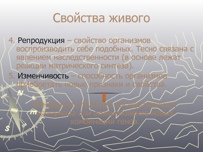 Свойства живого6. Наследственность (обусловлена генетическим кодом) Передача признаков  передача свойств   					особенностей 							 развития Преемственность